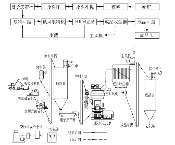 目前立式磨或立式磨+二次分級、三次分級工藝是重鈣精細(xì)化加工主流技術(shù)之一,該工藝主要適宜于600~2500目重鈣粉體的規(guī)模化生產(chǎn)。