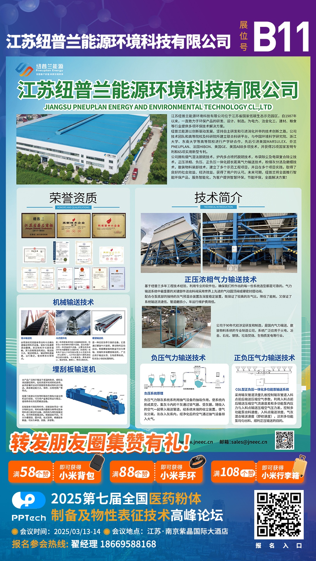 從第七屆全國(guó)醫(yī)藥粉體制備及物性表征技術(shù)高峰論壇組委會(huì)獲悉,本屆會(huì)議將于2025年3月13-14日在南京舉辦。江蘇紐普蘭能源環(huán)境科技有限公司作為參展單位邀請(qǐng)您共同出席。