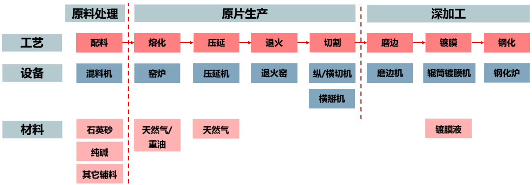 具體來說可細分為配料、熔化、壓延、退火、切割、磨邊、鍍膜、鋼化等8個工藝步驟。