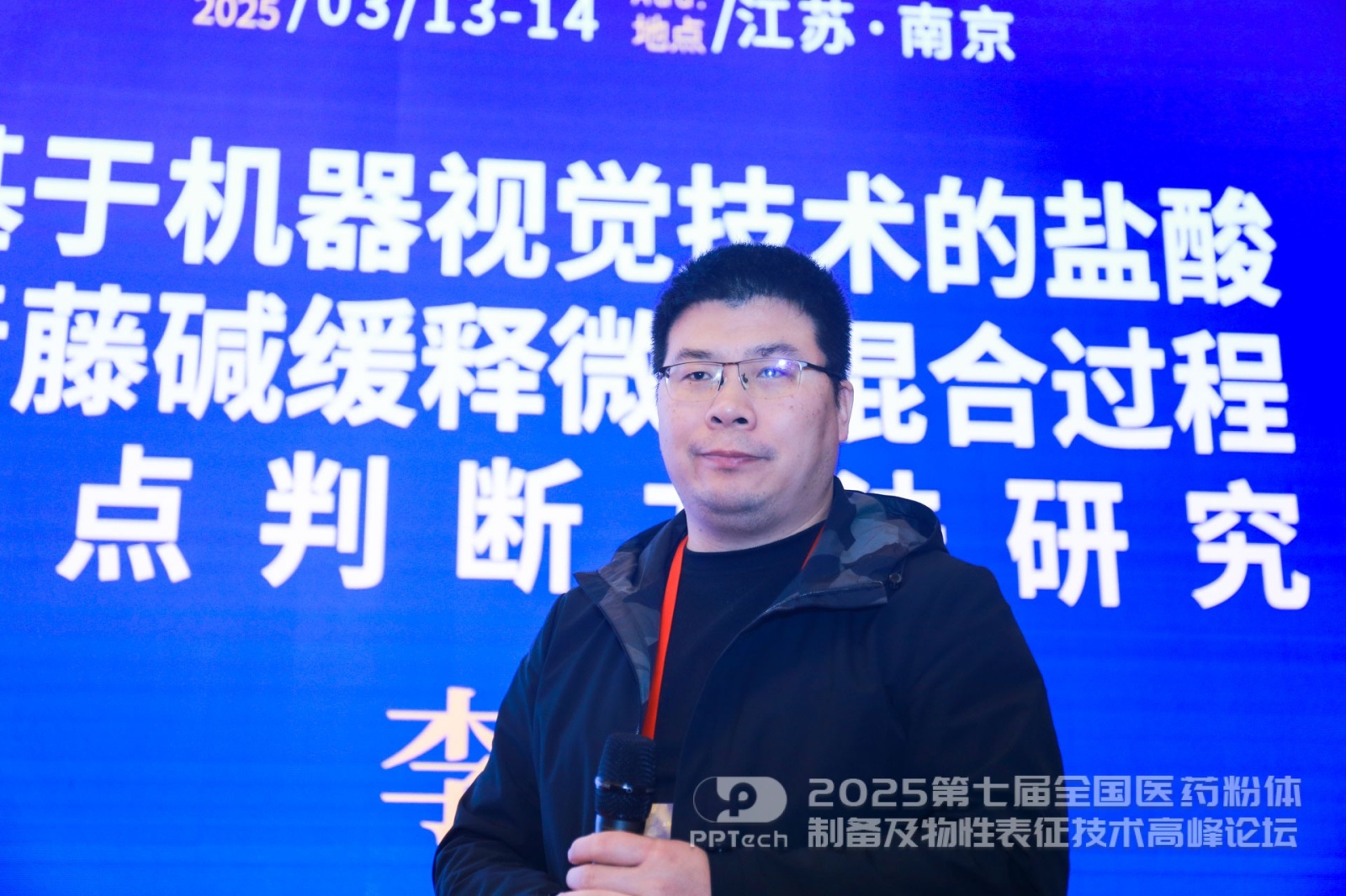 天津中醫(yī)藥大學(xué)李文龍研究員作《基于機器視覺技術(shù)的鹽酸青藤堿緩釋微丸混合過程終點判斷方法研究》報告
