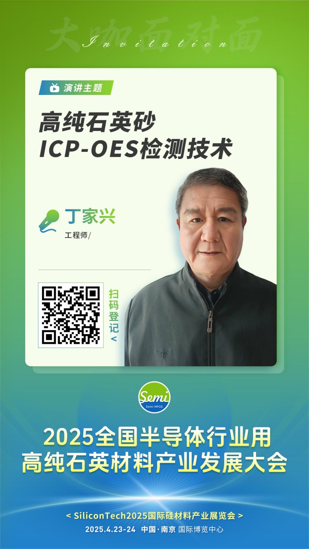 2025年4月23-24日,由中國粉體網、中粉會展主辦的“2025全國半導體行業用高純石英材料產業發展大會”將在江蘇南京召開,屆時來自江蘇東海的工程師丁家興將做題為《高純石英砂ICP-OES檢測技術》的報告。
