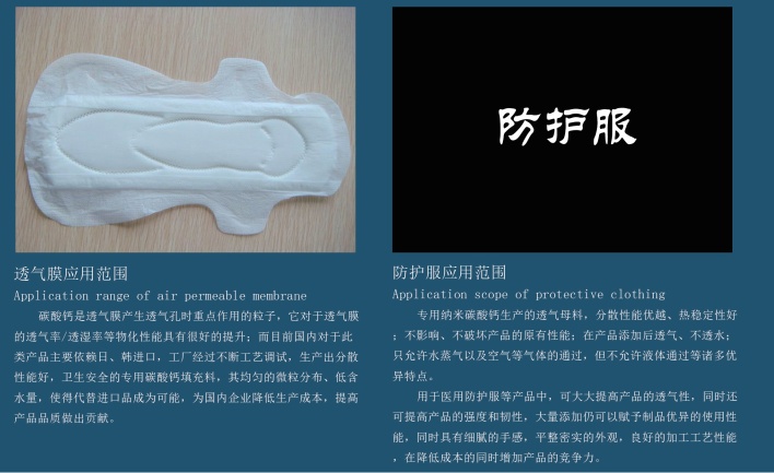 廣泛應(yīng)用于橡膠、塑料、塑鋼門窗、PVC電纜料、高級涂料、管材、輪胎、鞋底、聚乙烯吹膜、封膠條、玻璃鋼制品、造紙、建材、油墨、日用化工、紡織、飼料、食品添加劑等行業(yè)。