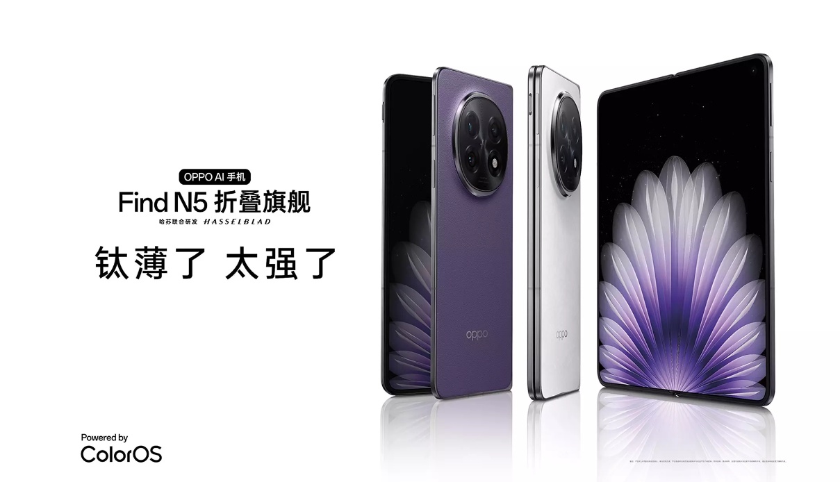 2月20日,OPPO發(fā)布全球最薄折疊手機Find N5,通過首創(chuàng)的0.15毫米3D打印“鈦合金天穹鉸鏈”,將OPPO Find N5的厚度進一步降低,讓折疊屏機身厚度與直板機相媲美。
