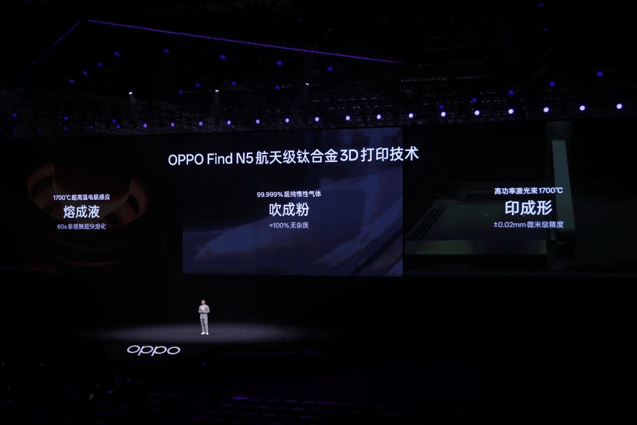 2025年2月20日,OPPO發布全新一代折疊旗艦Find N5,其最大亮點是變薄,關鍵在于采用了“3D打印鈦合金天穹鉸鏈”。該鉸鏈主要由翼板和軸外中框構成,借助3D打印技術,實現了折疊厚度僅8.93毫米的極致輕薄機身,其中翼板最薄處達0.15毫米,挑戰了傳統CNC加工的極限。