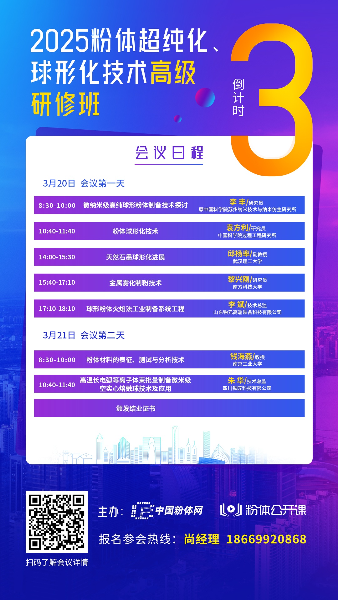 2025粉體超純化、球形化技術高級研修班將于2025年3月20日至21日在江蘇蘇州舉辦,湖北菲利華石英玻璃股份有限公司邀您一起來學習探討。