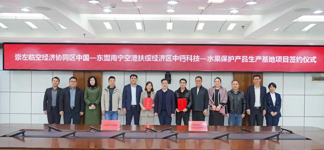 2月28日,中鈣科技—水果保護產品生產基地項目舉行簽約儀式,項目由中鈣新材料科技(北京)有限責任公司投資建設。項目選址于中國—東盟南寧空港扶綏經濟區,主要建設MS膠專用碳酸鈣和水果防護劑專用碳酸鈣生產線,冷法MS膠生產線,水果防護劑生產線等。項目滿產達產后,預計年工業主營業務收入達4.8億元以上。