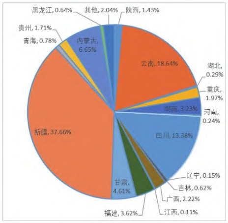 我國工業硅生產現狀呈現多方面特點。產量方面,2024年新疆的產能占全國產能的37.66%,其次是云南和四川,產能分別占18.64%和13.38%,再者內蒙古和甘肅也占據比較重要的比例,產能占比分別是6.65%和4.61%。