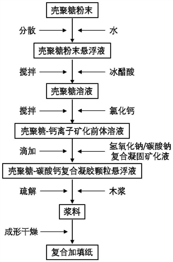 利用殼聚糖凝膠化過程中,同步原位生成碳酸鈣顆粒,使其均勻分布包裹在殼聚糖凝膠顆粒中;通過對凝膠化礦化過程控制,制備適于紙張抄造的復合凝膠顆粒;利用殼聚糖與纖維素的結構相似性與良好相容性,將殼聚糖-碳酸鈣復合凝膠顆粒用于造紙填料添加,在未添加助留劑的情況下可以顯著提高無機物的留著率,同時降低填料對纖維結合的破壞,從而進一步改善填料應用中的問題。
