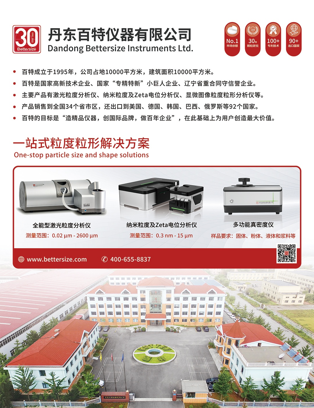 丹東百特儀器有限公司1995年成立,距今有30年歷史,是中國知名的粒度儀器制造企業。現有員工超200人,建筑面積超過10000平方米,是中國知名的粒度儀器制造企業;是國家高新技術企業,國家專精特新“小巨人”企業,國家知識產權優勢企業,AAA級誠信企業,以及CE認證,ISO9001-2015認證。