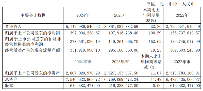 中國粉體網(wǎng)訊 3月29日,東睦新材料集團(tuán)股份有限公司(簡稱“東睦股份”)發(fā)布年度報告,全年實(shí)現(xiàn)營業(yè)收入51.43億元,同比增長33.20%;歸屬于上市公司股東的凈利潤3.97億元,同比大幅增長100.59%;扣非凈利潤達(dá)3.79億元,增幅高達(dá)153.62%。