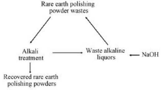 伍鶯等人研究了稀土拋光粉廢料與NaOH混合焙燒,通過焙燒產生了RE(OH)3和NaF,焙燒產物在鹽酸中的稀土回收率得到了提高,與沒有進行堿焙燒的粉體相比,稀土回收率高出10%左右。