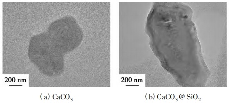CaCO3和CaCO3@SiO2的透射電鏡圖