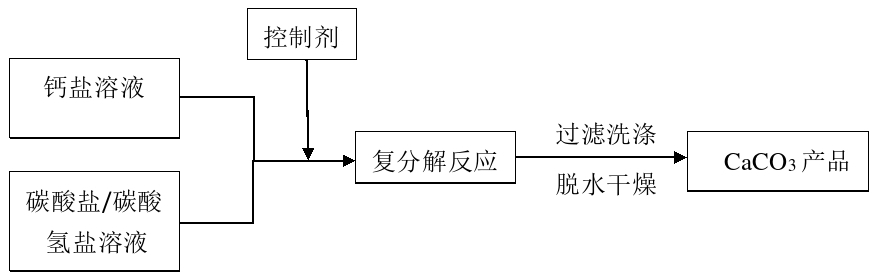 復分解法可通過控制反應物的濃度、溫度及生成物碳酸鈣的過飽和度,加入適當的添加劑等制取球形的粒徑小于0.1μm、比表面積很大、溶解性很好的無定形碳酸鈣產品,其純度高、白度好。