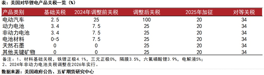 在直接影響方面,動力電池領域因受此前《通脹削減法案》限制,中國對美出口已基本停滯,影響相對有限。而儲能電池方面,美國基本采購中國的鐵鋰電芯,眼下301條款關稅還未生效,加征關稅短期內或有搶裝需求。