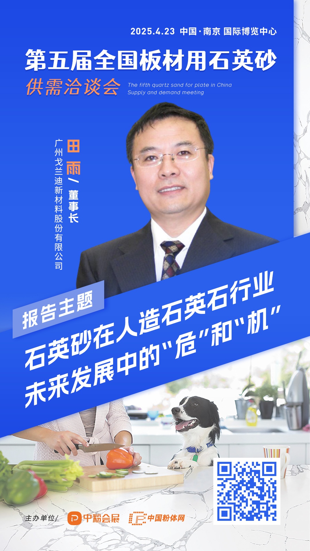 面對石英石行業當下激烈的市場競爭態勢和發展變化,石英砂企業應該如何做呢?2025年4月23日,由中國粉體網、中粉會展主辦的“第五屆全國板材用石英砂供需洽談會”將在江蘇南京召開,屆時廣州戈蘭迪新材料股份有限公司董事長田雨將做題為《石英砂在人造石英石行業未來發展中的“危”和“機”》的報告。