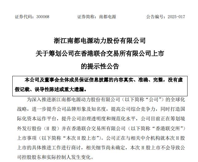 中國粉體網訊  4月23日,浙江南都電源動力股份有限公司(簡稱:南都電源)發布公告稱,公司正式啟動港股上市事項,標志著公司向著成為“A+H”上市的全球龍頭企業邁出堅實一步。