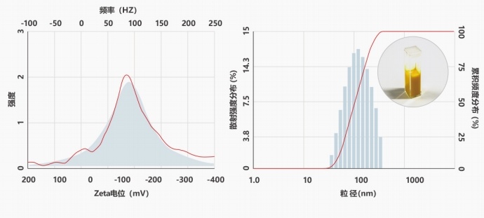 下圖顯示了測量接近原液的濃厚溶液的粒徑和Zeta電位的結果。