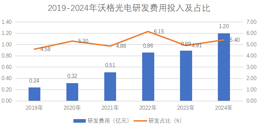 2019-2024沃格光電研發費用投入及占比 來源:沃格光電