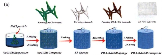 PDA-rGO/SR復(fù)合材料內(nèi)部三維導(dǎo)熱網(wǎng)絡(luò)構(gòu)筑示意圖