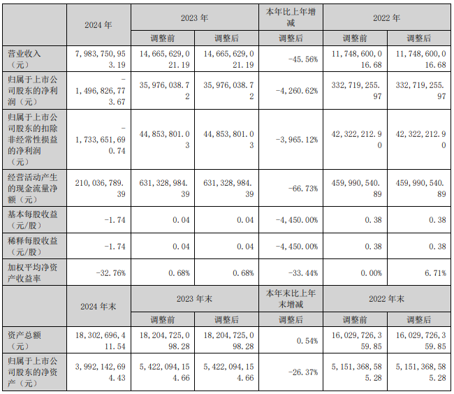 中國粉體網訊  近日,浙江南都電源動力股份有限公司(簡稱:南都電源)發布2024年年度報告,報告期內公司實現營業收入約79.84億元,同比減少45.56%;實現歸屬于上市公司股東的凈利潤約-14.97億元,同比減少4260.62%;歸屬于上市公司股東的扣除非經常性損益的凈利潤約-17.34億元,同比減少3965.12%。