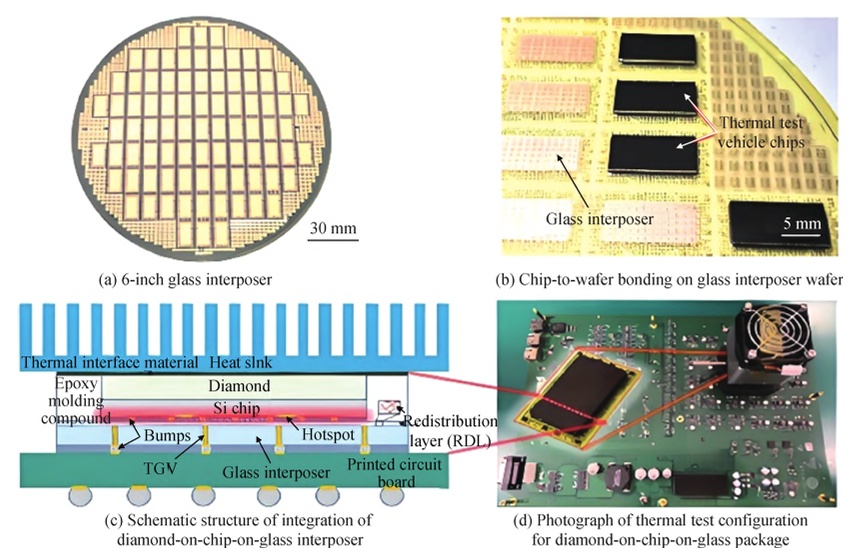 金剛石-芯片-玻璃中介層封裝集成和熱測試 來源:《金剛石-芯片-玻璃中介層的異構集成,實現高效的熱管理》(鐘毅等)
