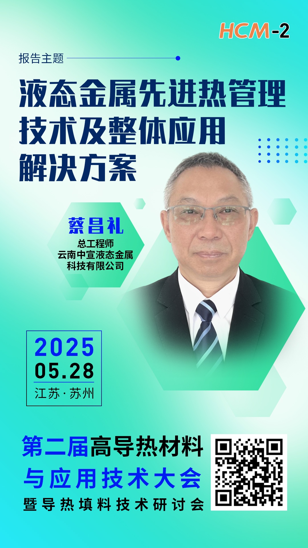 2025年5月28日,中國粉體網將在江蘇·蘇州舉辦“第二屆高導熱材料與應用技術大會暨導熱填料技術研討會”。屆時,我們邀請到云南中宣液態金屬科技有限公司總工程師蔡昌禮出席本次大會并作題為《液態金屬先進熱管理技術及整體應用解決方案》的報告。本報告將聚焦中宣液態10余年來在液態金屬熱管理領域的技術沉淀(特別是液態金屬熱界面材料領域相關技術),詳細講述中宣液態金屬相關產品以及整體解決方案,并對液態金屬熱管理技術的應用前景和發展方向進行展望。