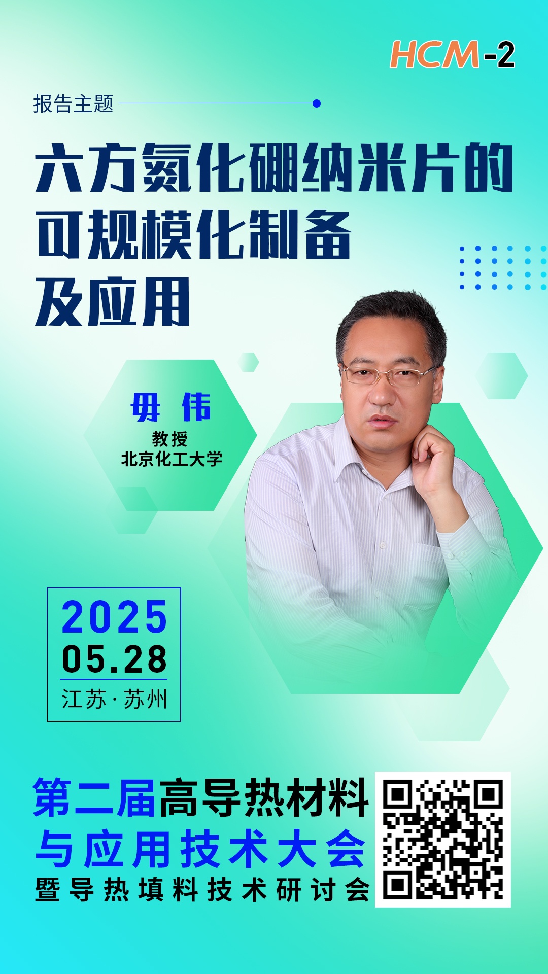 2025年5月28日,中國粉體網將在江蘇·蘇州舉辦“第二屆高導熱材料與應用技術大會暨導熱填料技術研討會”。屆時,我們邀請到北京化工大學毋偉教授出席本次大會并作題為《六方氮化硼納米片的可規模化制備及應用》的報告。本報告將主要介紹低共熔溶劑體系和水-表面活性劑體系,復合剝離法低成本、高效、可規模化制備六方氮化硼納米片及羥基化六方氮化硼納米片的技術、原理及在導熱和吸附方面的應用,為六方氮化硼的大規模制備及應用提供一個新的方法和思路。