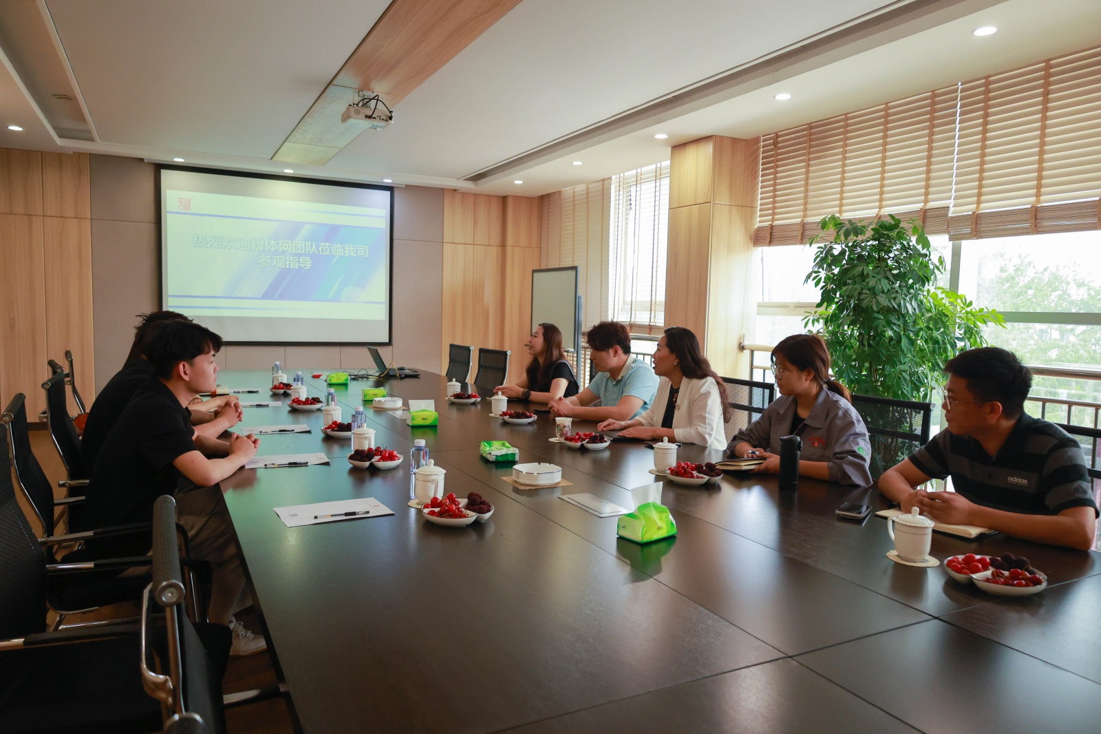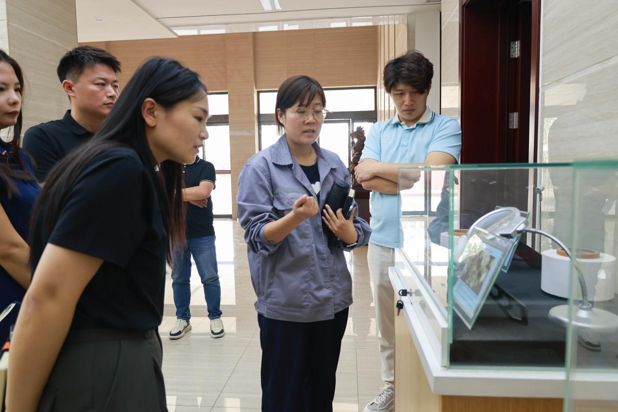 粉體網一行與天馬新材董事長馬淑云(右四)、銷售總監馬淑梅(右三)、技術總監許慧慧(左三)及王總(左四)合影