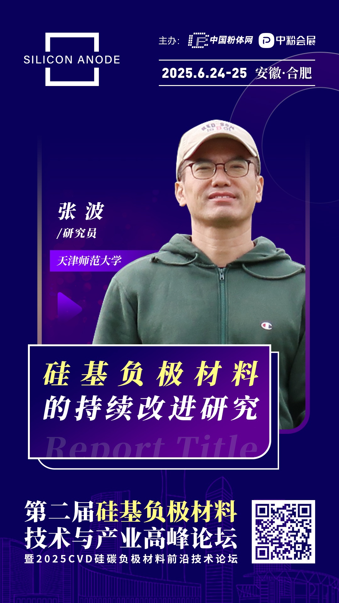 針對各類負極材料的產業化技術與國內外市場狀況,中國粉體網將于2025年6月24-25日在安徽·合肥舉辦第二屆硅基負極材料技術與產業高峰論壇暨2025CVD硅碳負極材料前沿技術論壇。旨在為負極材料產業鏈上中下游企業搭建深度交流的平臺,開展產、學、研合作,助推負極材料行業持續健康發展。屆時,天津師范大學研究員張波將作題為《硅基負極材料的持續改進研究》的報告。報告將系統介紹硅氧和硅碳負極材料的研究進展,并對納米硅及硅碳負極材料的產業化工作進行介紹,同時從不同的視角對CVD硅碳技術路線優缺點進行評價,最后對硅碳負極材料的未來進行展望。