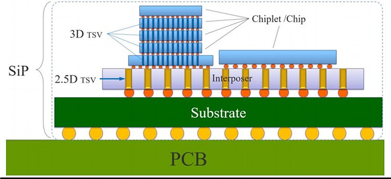 基于TSV技術的系統級封裝 來源:萬聯證券研究所