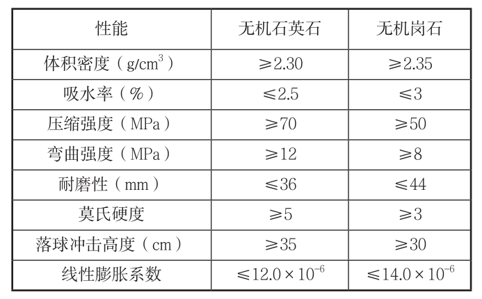 無機石英石和無機崗石的性能對比