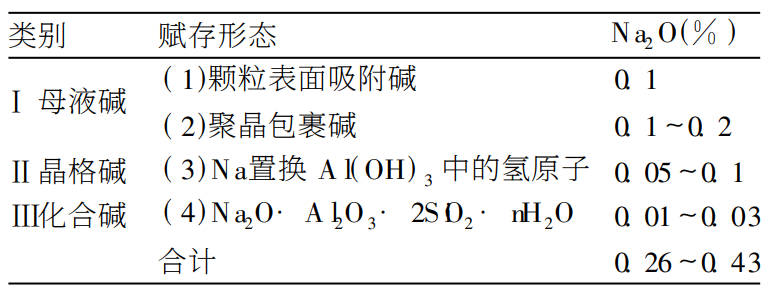 高溫氧化鋁的Na2O來自原料氧化鋁水合物 。氧化鋁水合物中的Na2O是生產氧化鋁工藝過程中形成的主要污染雜質之一 。氧化鋁水合物中所攜帶的Na2O分為三類(或4種)賦存形態。