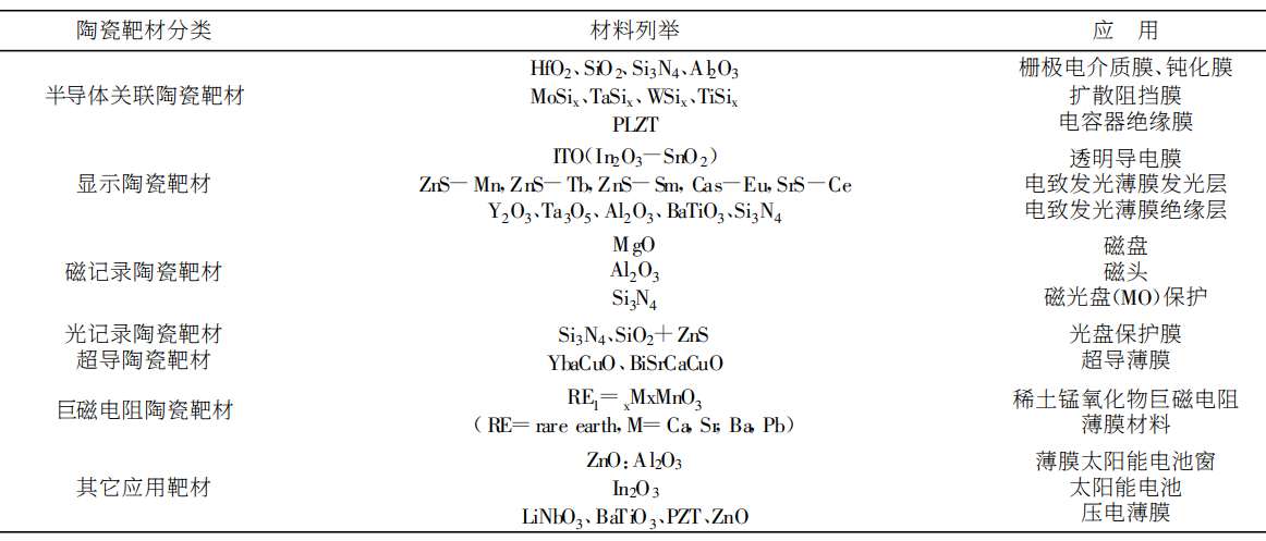 濺射靶材可應用于半導體、平板顯示、光伏、記錄存儲等多個領域。就其分類:按照形狀不同,濺射靶材可分為圓形靶、矩形靶和管狀靶。按照材質不同,濺射靶材材可以分為純金屬靶材(鋁、鈦、銅、鉭等)、合金靶材(鎳鉻合金、鎳鈷合金等)、陶瓷化合物靶材(氧化物、硅化物、碳化物、硫化物等)。