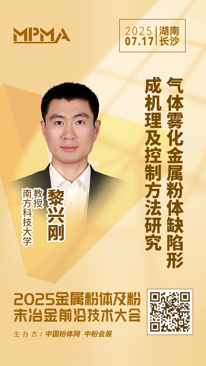 2025年7月17日,中國粉體網將在湖南·長沙舉辦“2025高端金屬粉體制備與應用技術大會暨2025通信電子、3D打印、粉末冶金市場金屬粉國產化交流會”。屆時,我們邀請到南方科技大學黎興剛教授出席本次大會并作題為《氣體霧化金屬粉體缺陷形成機理及控制方法研究》的報告,黎興剛教授將為您深入剖析氣體霧化制粉過程中粉體缺陷的形成機制,并系統介紹粉體缺陷控制方法的前沿研究進展。