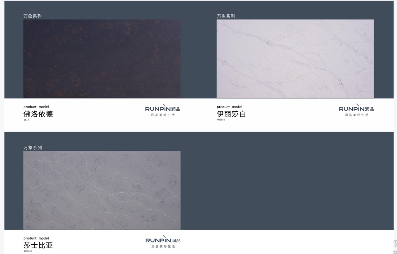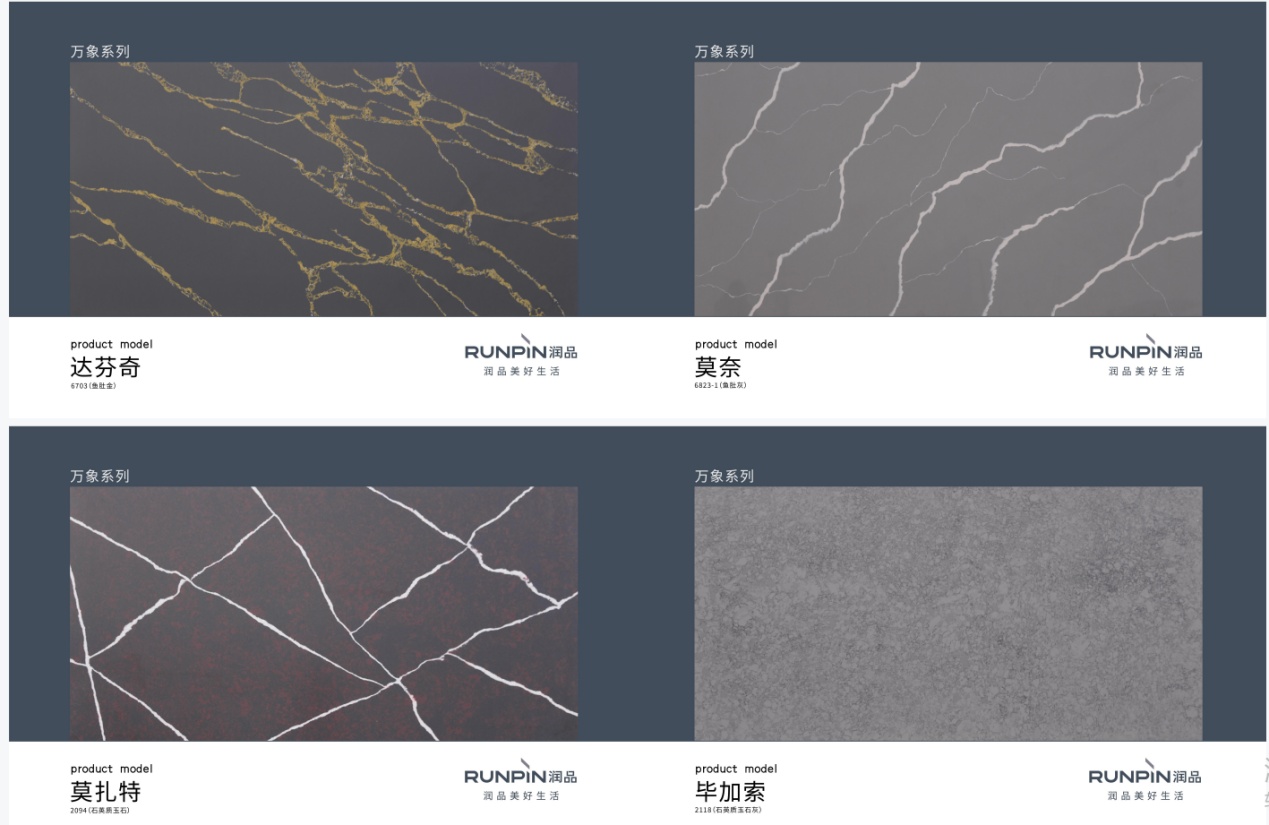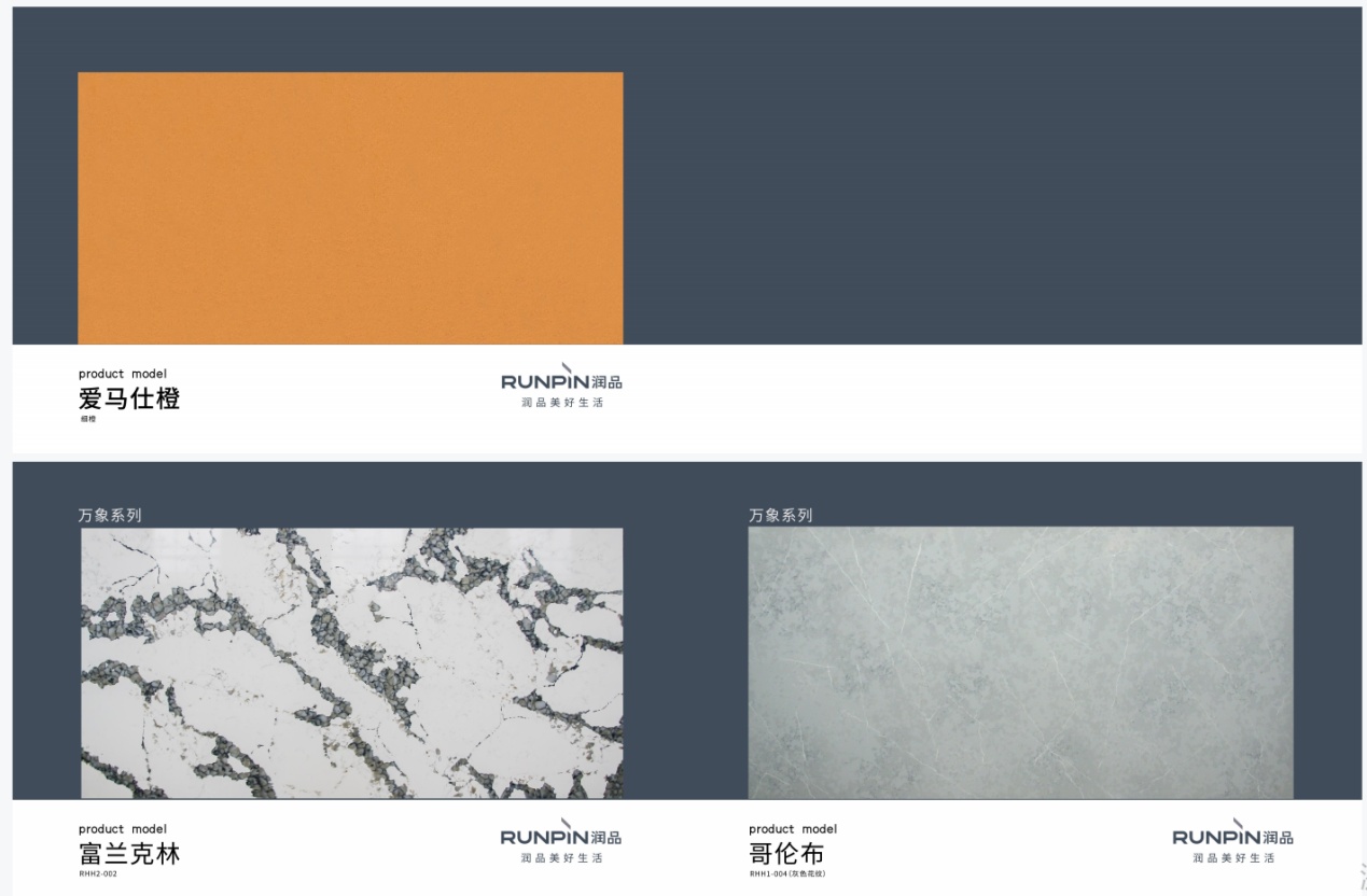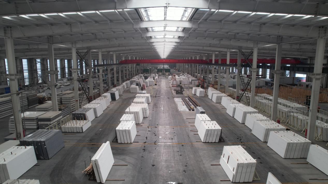 山東潤赫新型材料有限公司為華潤水泥投資控股有限公司附屬企業,下轄三家人造石生產制造基地,分別為山東潤赫新型材料有限公司、潤赫(費縣)新型材料有限公司、潤赫(蘭陵)新型材料有限公司,占地39萬㎡,建筑面積25萬㎡,設計年產能1500萬㎡,產能優勢巨大。擁有石英石、無機石生產線一百三十余條,其中潤赫(費縣)生產基地全部采用自主研發的智能化人造石英石板材生產線,生產過程更加智能化、環保。板材尺寸靈活,其中最大規格為3500*2000。產品涵蓋有機石英石、無機水磨石等多種類人造石,上千種花色,其中有機石英石包括顆粒板、花紋板、超細顆粒板等,無機水磨石包括花紋板、復色板、特殊面等。石英石產品廣泛應用于臺面、家居裝飾、背景墻等,無機水磨石產品廣泛應用于墻面、地面、公共空間等區域。