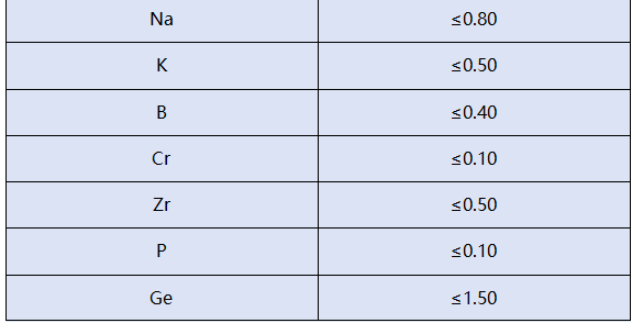 石英砂費雷特最長直徑與費雷特最短直徑之比不大于2:1的顆粒數量占比90%以上,石英砂各雜質元素含量應不超過規定。