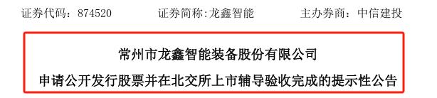 中國粉體網(wǎng)訊 6月19日,北交所受理了常州市龍鑫智能裝備股份有限公司(證券代碼:874520,證券簡稱:龍鑫智能)的IPO申請。