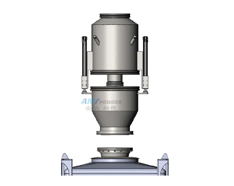 1)錐閥料罐用于粉體顆粒的轉運和暫存。料罐內部含有安納帕德特有的錐閥,保證物料不會泄露。料罐錐閥配合安納帕德卸料站可以實現自動對接和自動卸料并且無粉塵泄露。