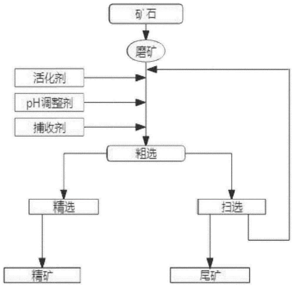 該組合捕收劑由1~9份陰離子捕收劑和1~3份陽離子捕收劑組成;所述陰離子捕收劑為油酸、氧化石蠟皂、塔爾油、油酸鈉和十二烷基苯磺酸鈉中的至少一種;所述陽離子捕收劑為十二胺、十八胺和醚胺中的至少一種。基于該組合捕收劑,對花崗巖尾礦進行長石石英高效浮選分離,在弱堿性條件下,有效改性石英表面,促使石英礦石表面疏水化,從而實現長石與石英的浮選分離,工藝全流程無氟無酸,不僅降低了生產成本,還解決了生產過程中的污染問題。