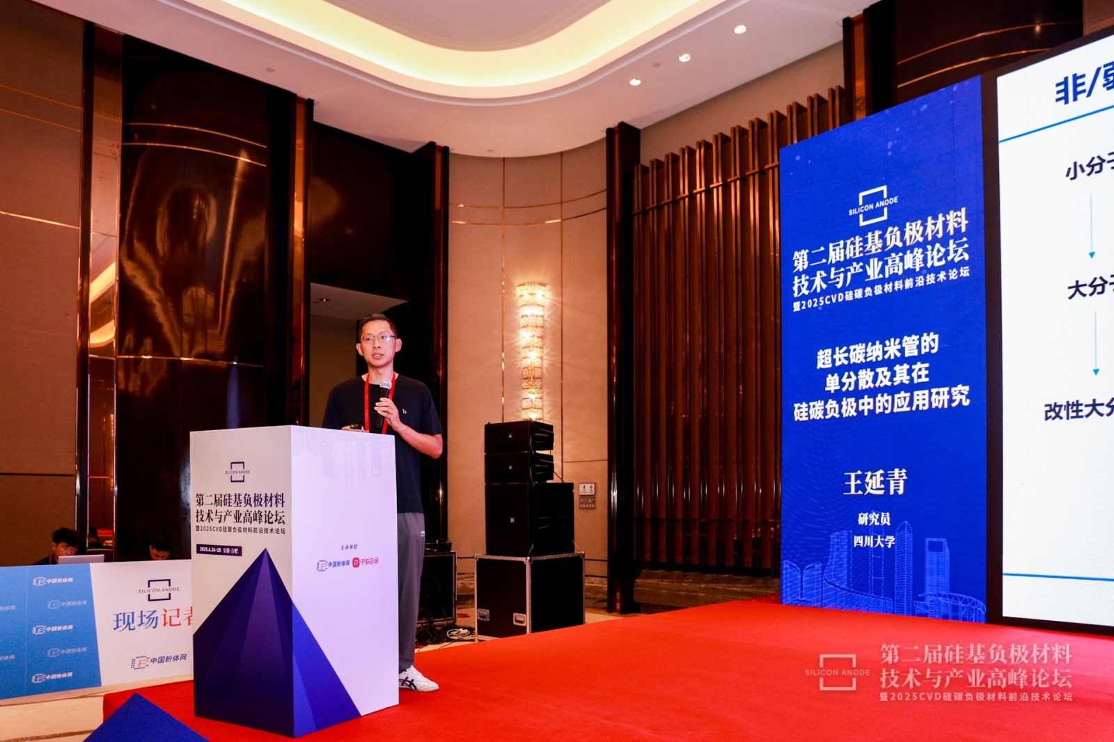 四川大學(xué)王延青研究員作《超長(zhǎng)碳納米管的單分散及其在硅碳負(fù)極中的應(yīng)用研究》報(bào)告