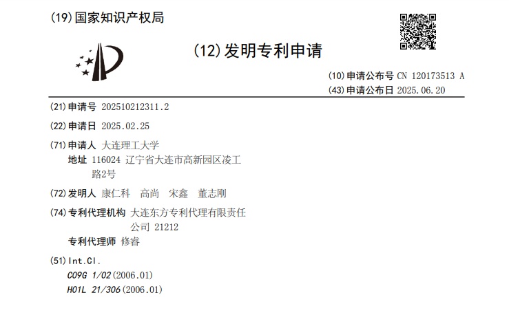 近日,大連理工大學、青海圣諾光電科技有限公司分別取得碳化硅襯底用氧化鋁拋光液相關專利。