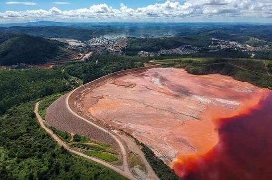 巴西阿盧米尼奧的大壩,水庫中含有2500萬立方米的“赤泥”,圖片來源:Nature