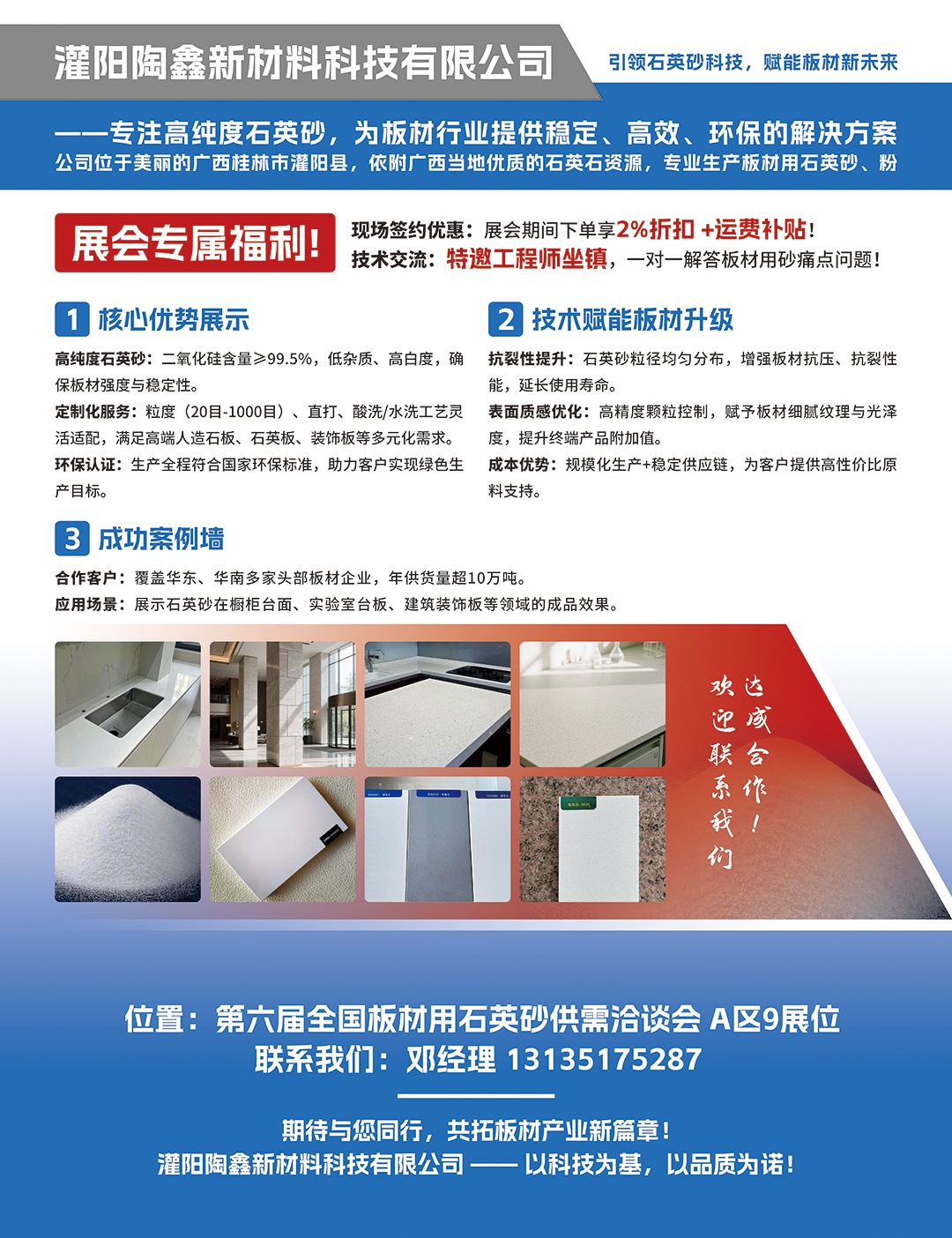 由中國粉體網主辦的“2025第六屆全國板材用石英砂供需洽談會”將于8月8日山東棗莊舉辦,灌陽陶鑫新材料科技有限公司邀您一同參加。