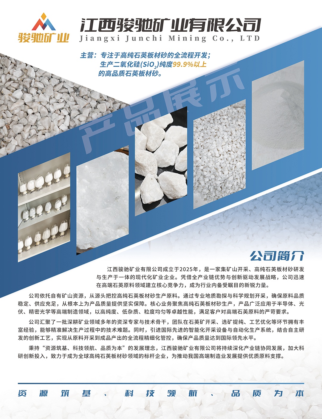 由中國粉體網主辦的“2025第六屆全國板材用石英砂供需洽談會”將于8月8日山東棗莊舉辦,江西駿馳礦業有限公司邀您一同參加。