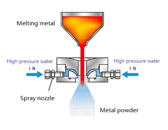 水霧化制粉是通過高壓水流沖擊熔融金屬液流,使其破碎成細(xì)小液滴并快速冷卻凝固的工藝,具有成本低、生產(chǎn)效率高的特點(diǎn),但粉末形狀不規(guī)則且氧含量較高,多用于鋼鐵粉末等中低端產(chǎn)品。