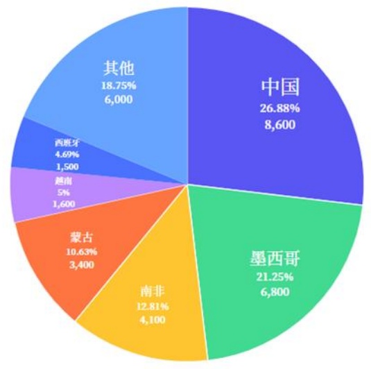 中國粉體網訊 螢石是一種不可再生的戰略性礦產資源。根據2025年初美國地質調查局公布的世界螢石儲量數據,中國的螢石儲量從6700萬噸上升至8600萬噸,超過墨西哥,占比居全球第一。