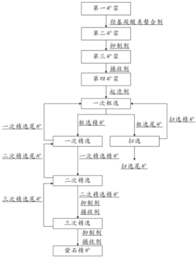 2025年5月,武漢理工大學李育彪等公開一種含方解石的螢石浮選方法。將含方解石的螢石粗礦磨礦后,與水混合制得第一礦漿;向其中加入羥基羧酸類螯合劑,得到第二礦漿;向第二礦漿中加入抑制劑,得到第三礦漿;向第三礦漿中加入捕收劑,得到第四礦漿;向第四礦漿中加入起泡劑進行浮選,得到螢石精礦。