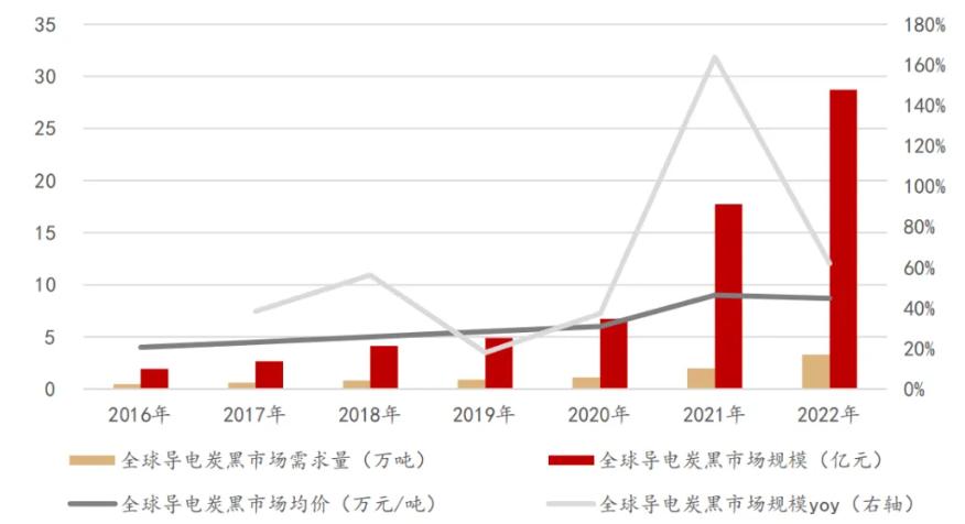 導(dǎo)電炭黑玩家少,價格也處于快速增長期,是一個小而美的市場。