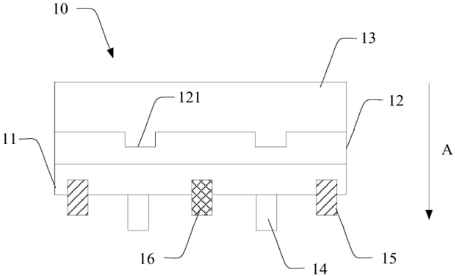 10-半導體器件、11-第一外延層、12-鈍化層、13-金剛石散熱層、14-柵極、15-源極、16-漏極、121-凹槽