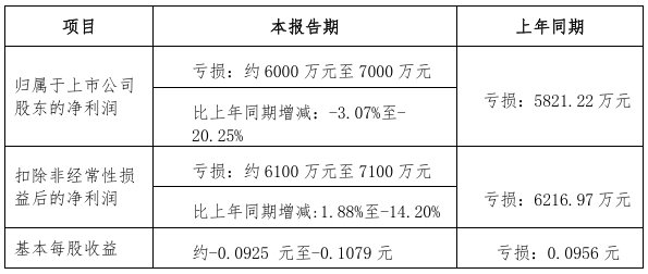 2025年上半年預計虧損6000~7000萬元,比上年同期增減-3.07%至-20.25%。